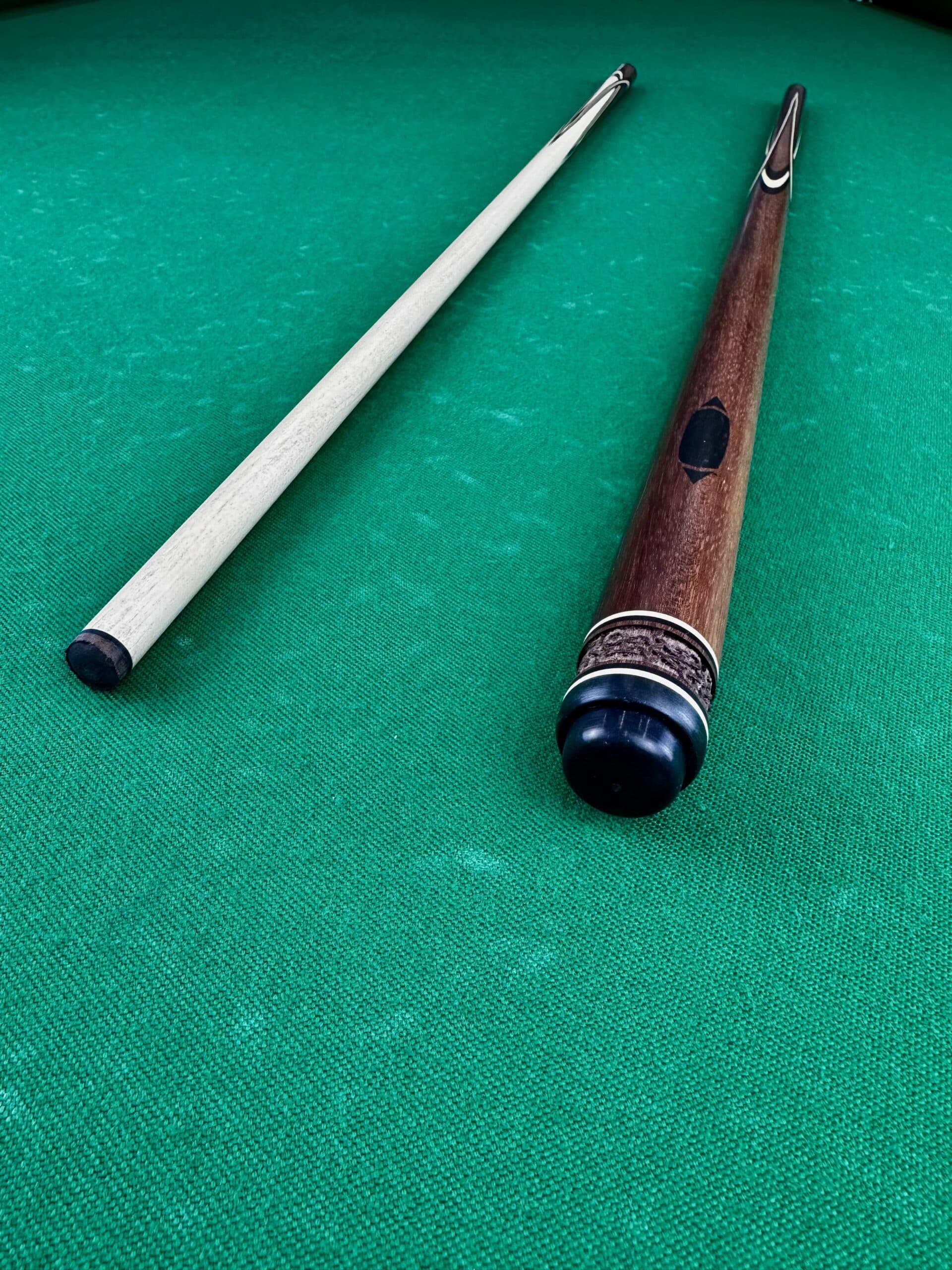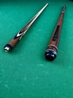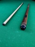 Комбинация двух различных древесных пород создает эффектный контраст между светлыми и темными участками, придавая кию особую выразительность. Черный граб, отличающийся своей плотностью и надежностью, обеспечивает долговечность и стойкость кия, а также способствует более точному контролю шаров во время игры.