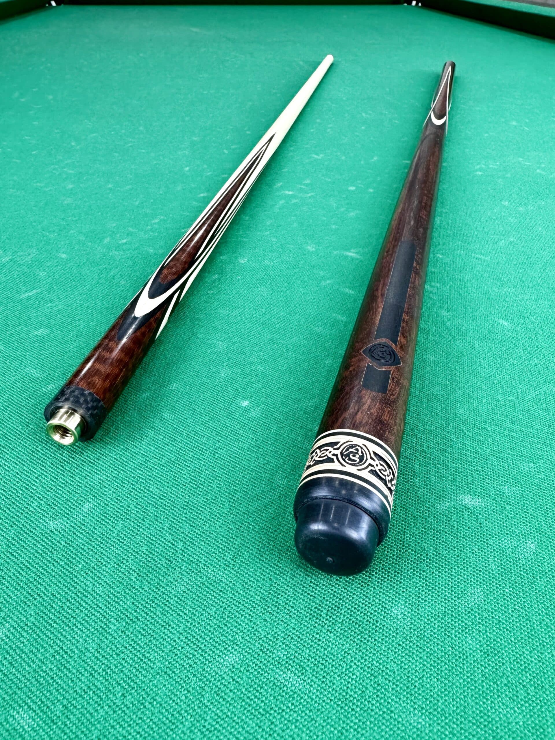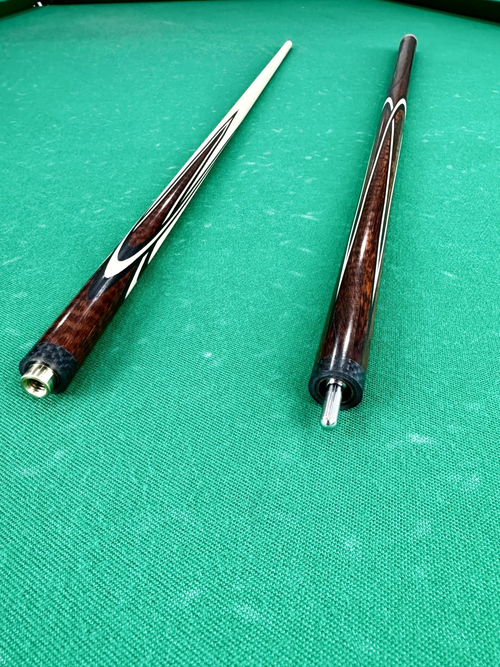 Технология «напряженного» кия подразумевает использование специальной конструкции и материалов, которые создают внутреннее напряжение в кие. Это напряжение увеличивает устойчивость кия к изгибам и деформациям, позволяя сохранять его форму и характеристики даже при интенсивной игре. Напряженный кий из змеиного дерева и эбена позволяет игроку чувствовать каждый удар, улучшая точность и уверенность в игре.