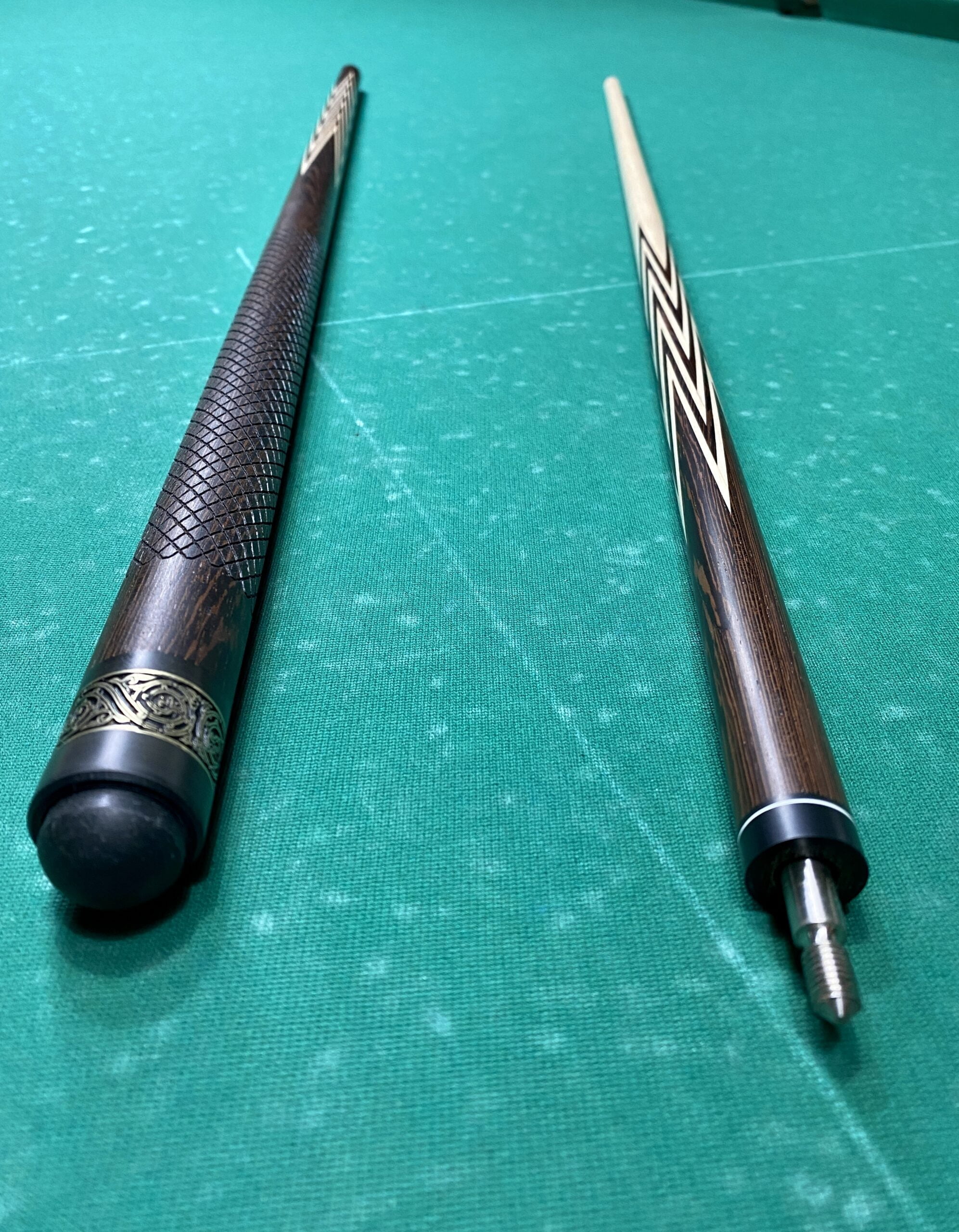 Бильярдный Кий Корона Венге лазерная насечка, латунное кольцо на бампере.