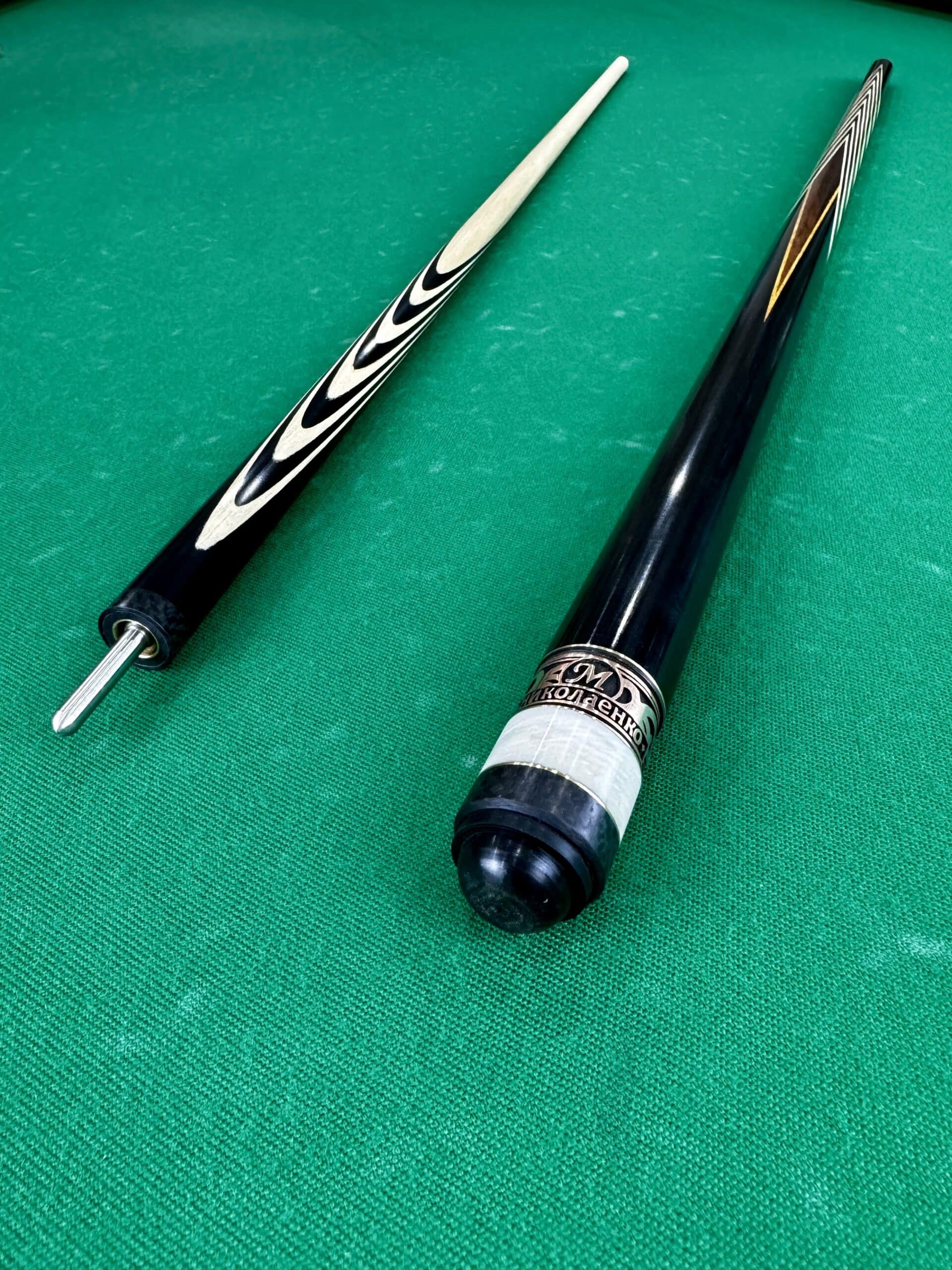 Бильярдный кий Николаенко с 12 запилами из чёрного граба с вставкой из лайсвуда – это выбор тех, кто стремится к совершенству в игре. Этот кий сочетает в себе прочность, стиль и непревзойдённые игровые характеристики, которые помогут раскрыть потенциал игрока на бильярдном столе. Каждая деталь в этом кию – от изысканной древесины до точных запилов – является результатом труда мастера, который вкладывает душу в создание своих произведений. Если вы ищете кий, который станет вашим надёжным спутником на пути к победам, этот шедевр от Максима Николаенко – ваш идеальный выбор.