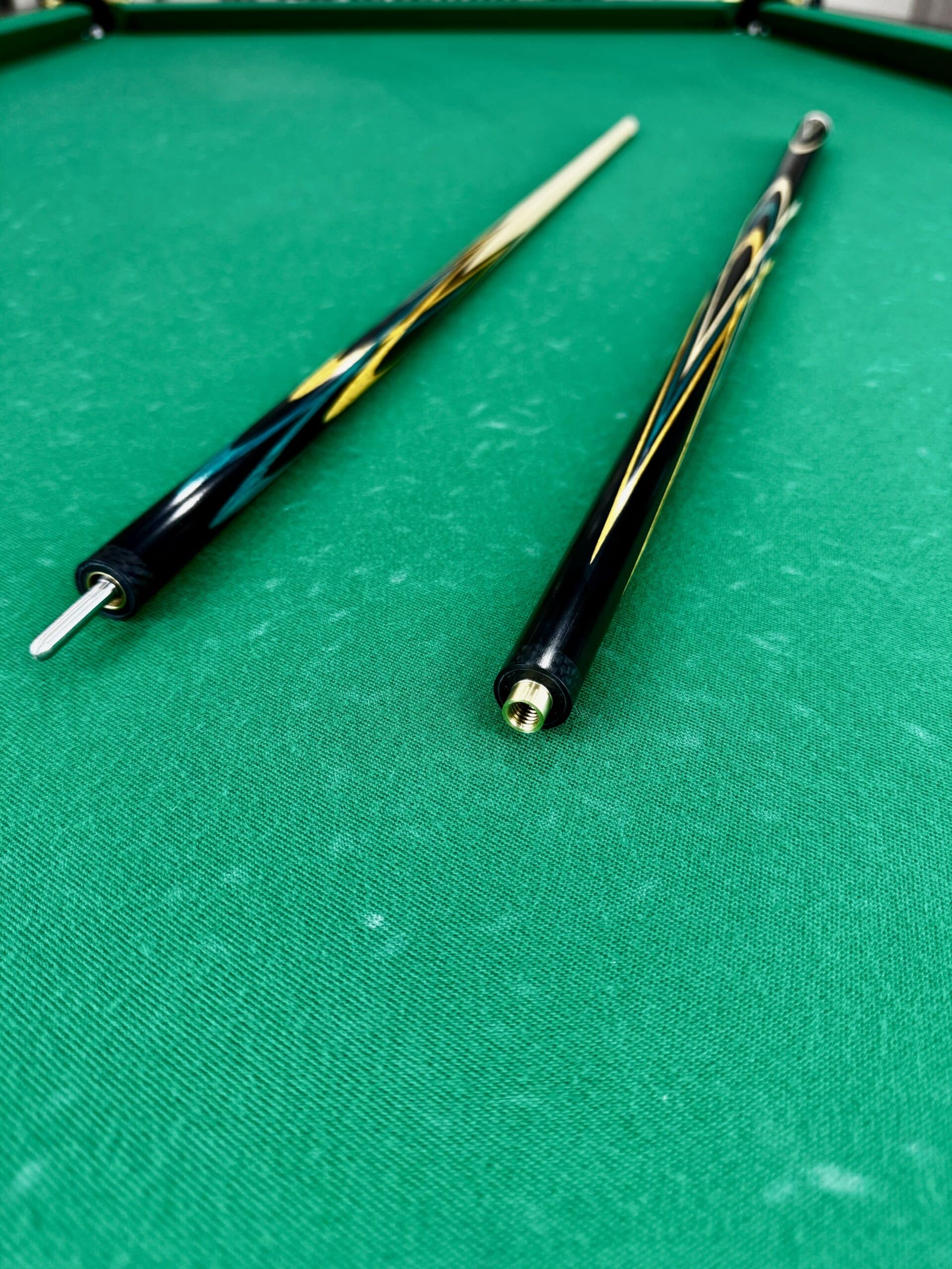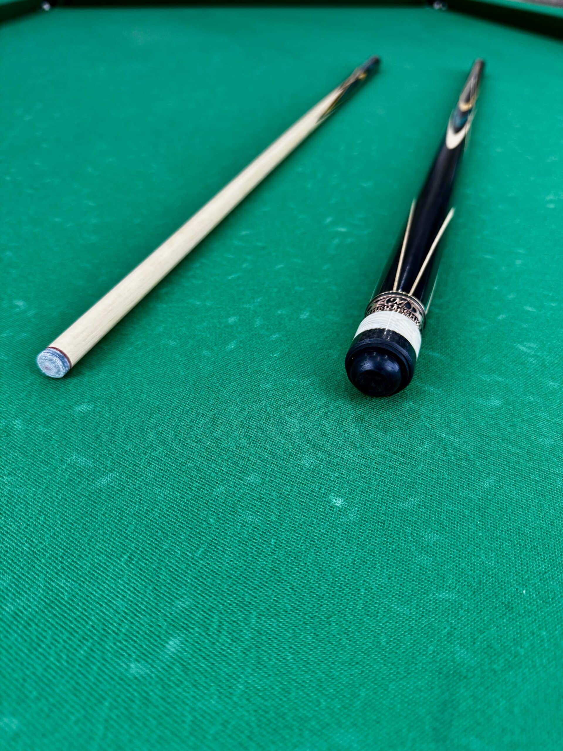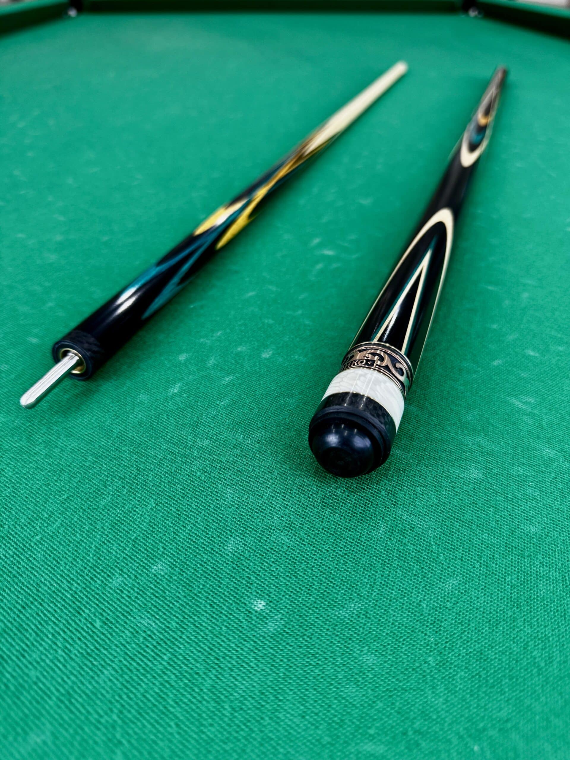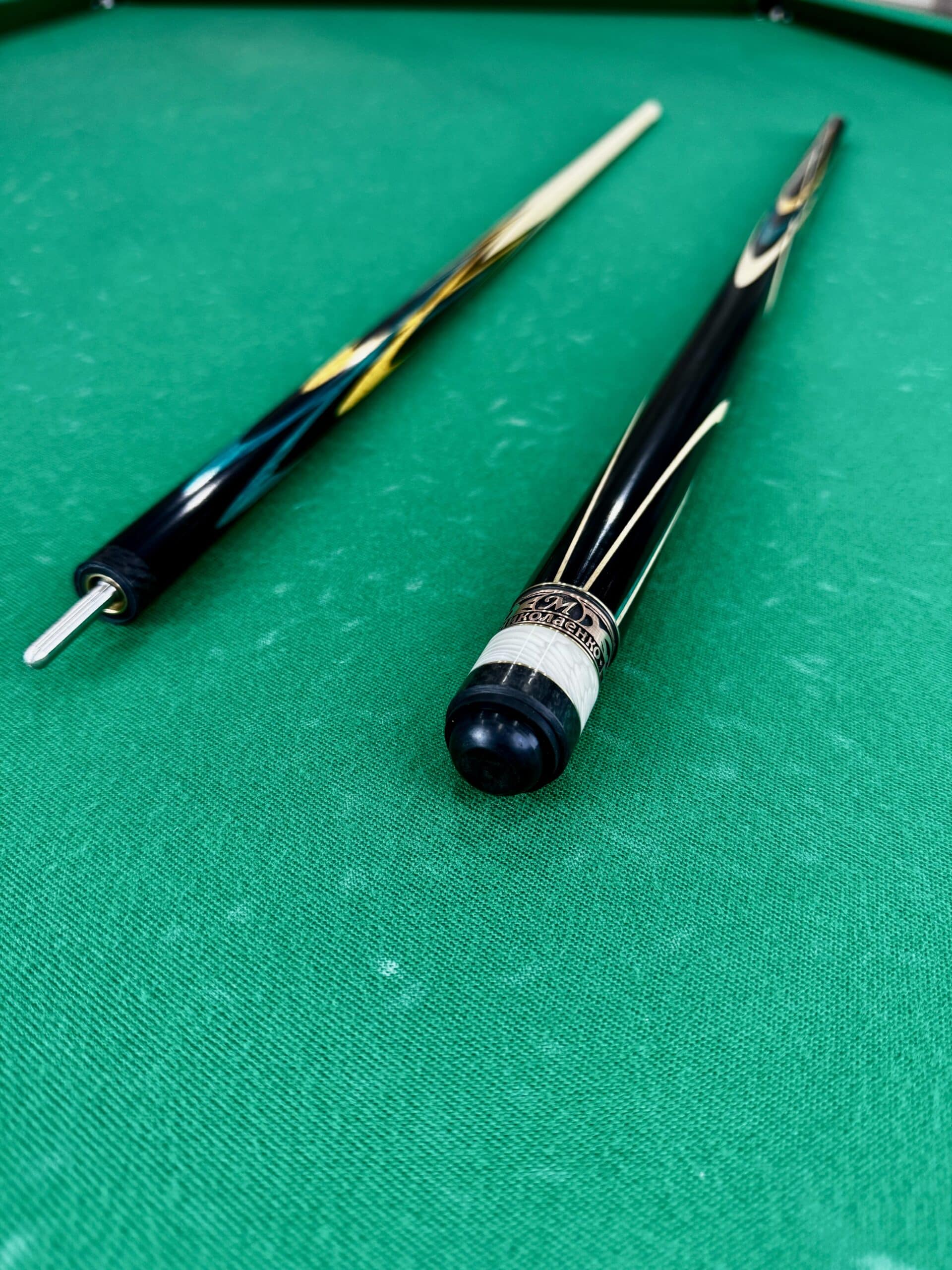 Бильярдный кий Николаенко «Тюльпан»: Искусство в чёрном грабе, амарилло и изумрудном зелёном