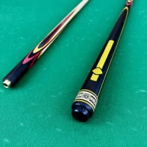 Бильярдный кий Цветок (попугай) черный+ желтый+ малиновый граб 4 лучевой напряженный AS