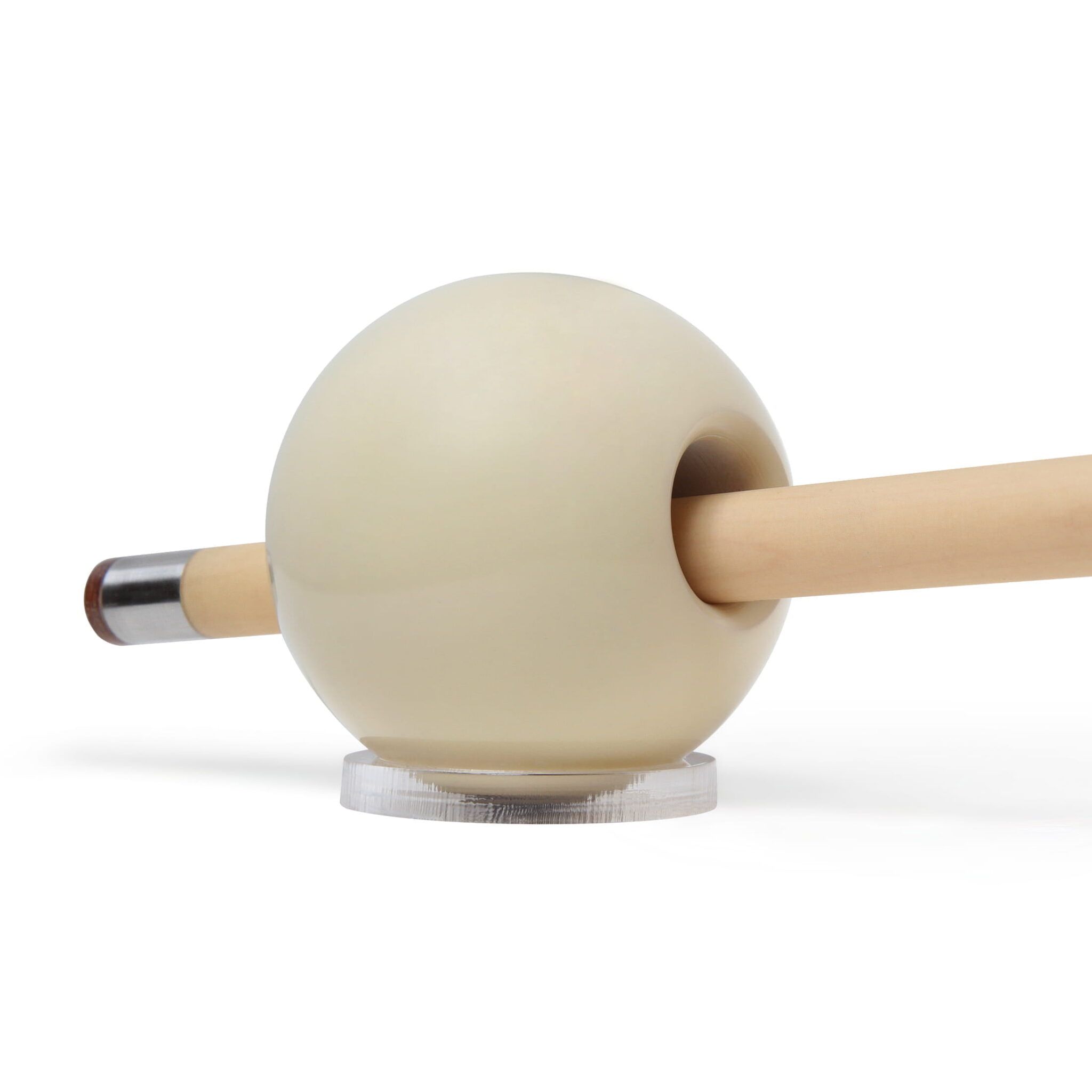 Тренажер представляет собой бильярдный шар диаметром 68 мм со сквозным отверстием диаметром 19-20 мм. Для удобства использования тренажер, также, оснащен пластиковой подставкой, что позволяет с легкостью устанавливать его в любую точку бильярдного стола и не беспокоиться о его устойчивости во время тренировки. За счет своей формы, тренажер обеспечивает игроку свободу в выставлении угла наклона, что играет немаловажную роль при отрабатывании удара от борта.