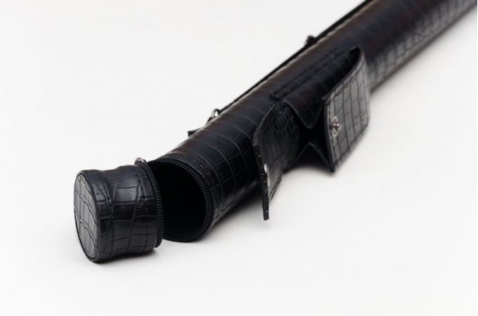 Тубус для бильярдного кия с карманом кнопка черный крокодил